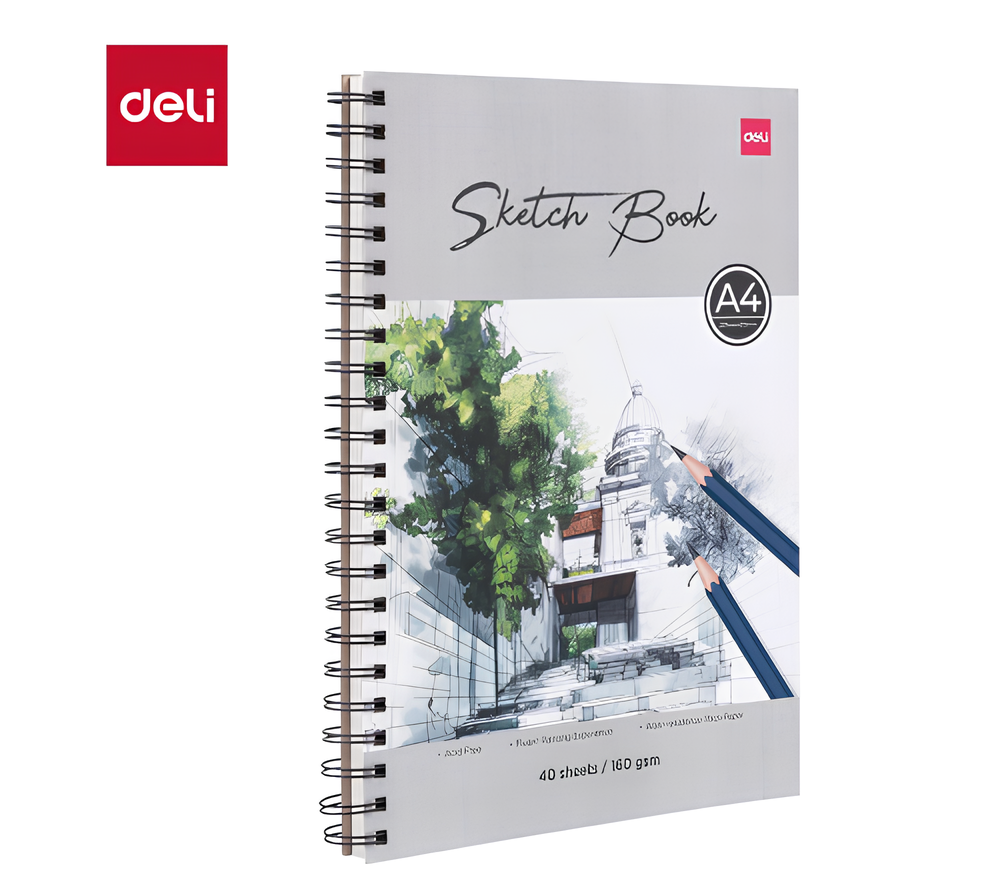 Deli Sketch Book A4 adalah buku gambar berkualitas tinggi yang dirancang khusus untuk kebutuhan menggambar, membuat sketsa, ilustrasi, hingga desain. Menggunakan kertas tebal 160 gsm, sketchbook ini nyaman digunakan dengan pensil, charcoal, hingga drawing pen tanpa mudah tembus. Desain spiral memudahkan halaman dibuka penuh atau dilipat ke belakang, sehingga praktis digunakan kapan saja.